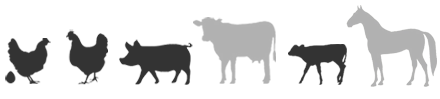 AVES (PARRILLEROS, REPRODUCTORES Y GALLINAS PONEDORAS ÚNICAMENTE EN PERÍODO DE RECRÍA), BOVINOS Y CERDOS.